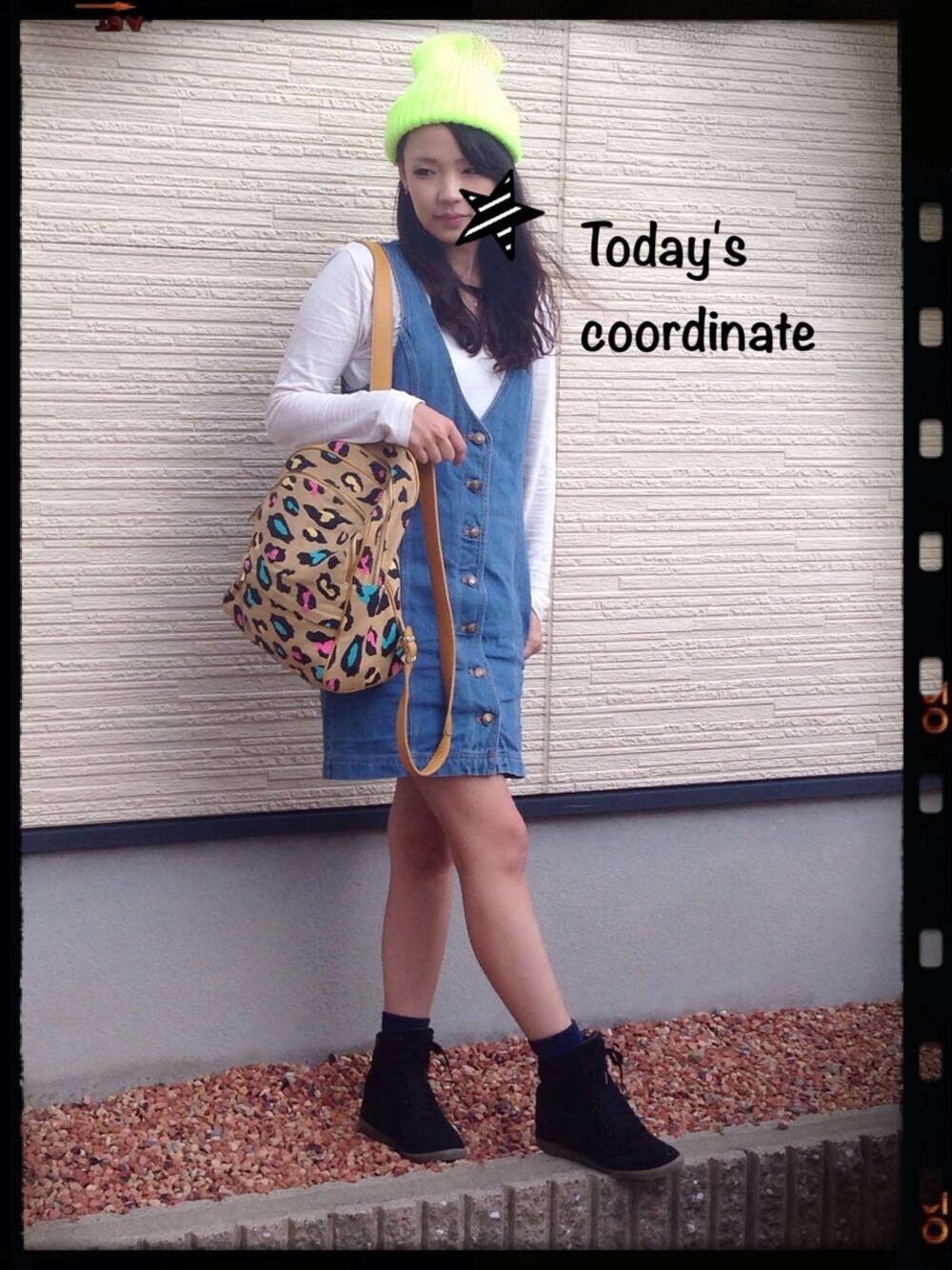 今日は、人混みいったので はぐれても目に付く ネオンカラーのニット帽で🎶 たくさん歩く予定だったので スニーカー🎶 手ぶらがいいので リュック🎶 リュックは韓国の♥︎ めっちゃおきにいり♥︎