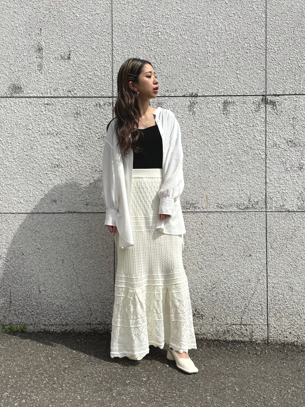 sakura_(FREE'S MART HEAD OFFICE)のスカート「◆透かし編みニットマーメイドマキシスカート」を使ったコーディネート