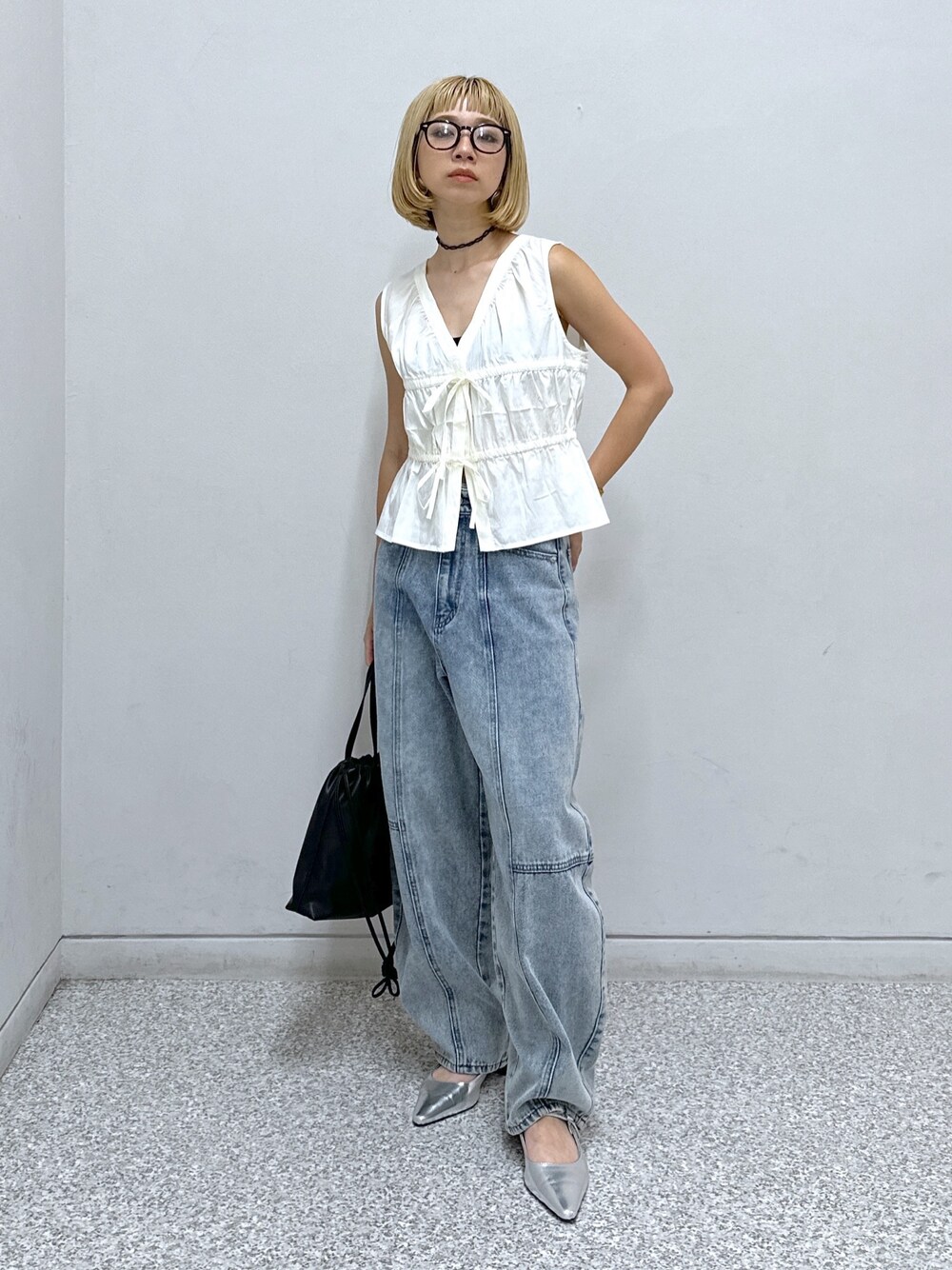 sakura_(FREE'S MART HEAD OFFICE)のシャツ/ブラウス「フロントリボンギャザーノースリーブブラウス」を使ったコーディネート