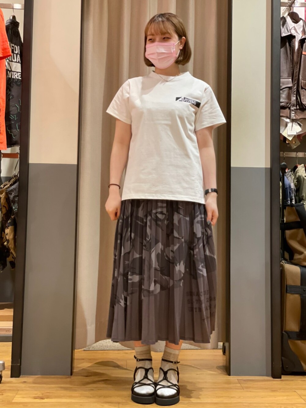 AVIREX横浜ジョイナス店 スタッフ身長:162cm 着用サイズ: トップスF, スカートF, サンダル24.5cm