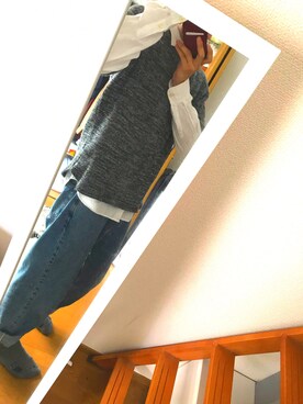 「GU(ジーユー)のアイテム(ニット/セーター、グレー系)」を使った、きょーいち。さん(メンズ)の夏コーディネート