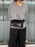 ウールのVネックニットとLAATOのレザーパンツを履いてみました! レザー特有の硬さもなく、生地も柔らかくてすごく着心地も良かったです☺️ ニットの丈がお尻まですっぽり隠れるので、PIENIのウエストポーチを合わせてみました!