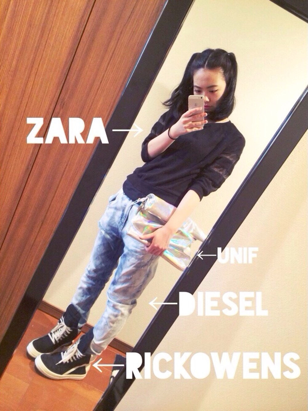 トップス→ZARA サルエルパンツDIESEL スニーカーRICKOWENS クラッチバックUNIF 最近投稿してる写真ずっと同じ髪型、、 前髪が中途半端な長さだから これが一番楽チン〜 何かいいヘアアレンジ方法ないかな☆〜(ゝ。∂)