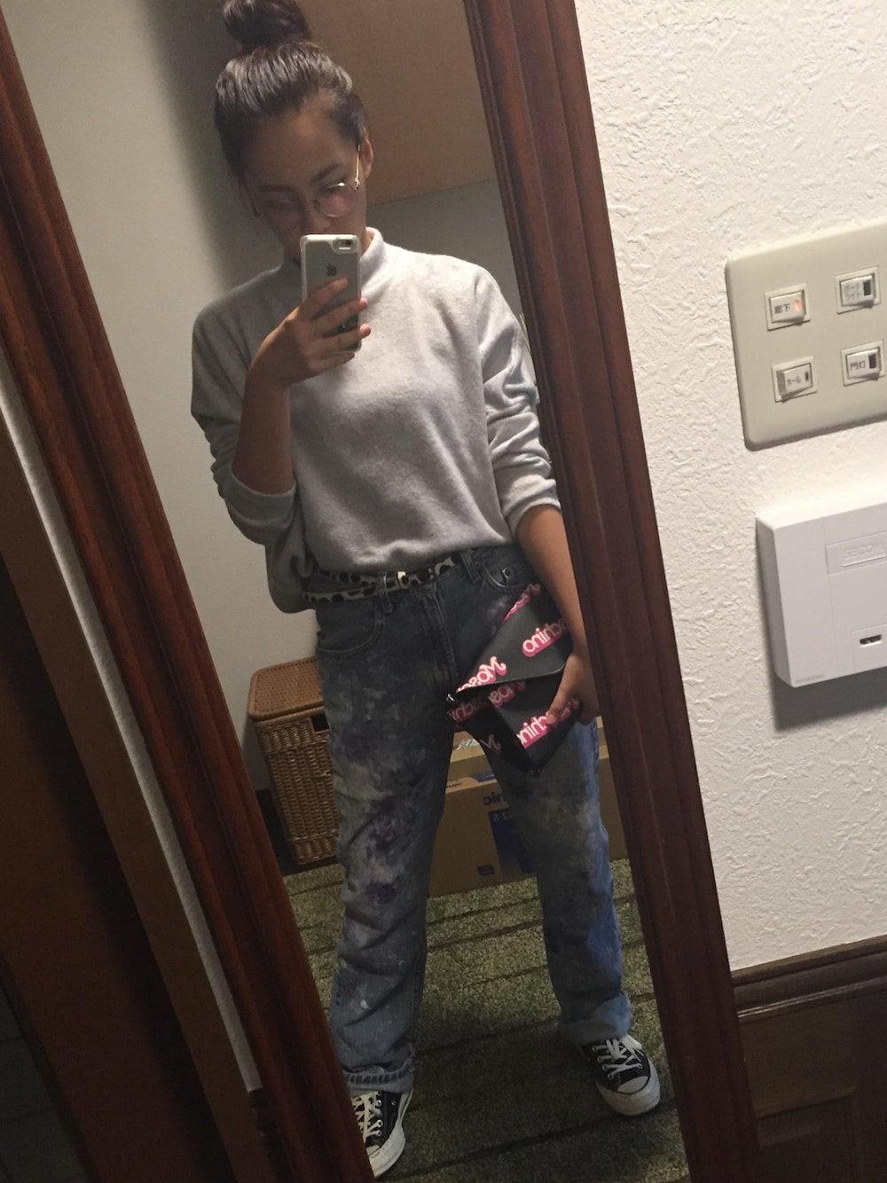 Sakura Sakakibaraのクラッチバッグ「Moschino Printed textured-PVC clutch」を使ったコーディネート