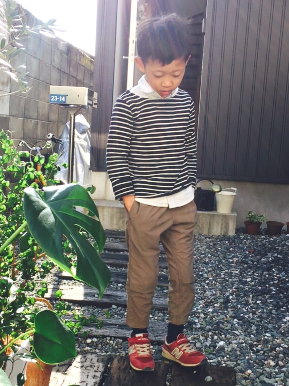 春の陽気...ボーダーにシャツインでフレンチカジュアル♡ 学校行ってらっしゃい。今日もがんばろうね!