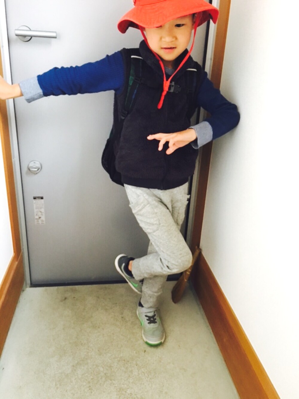 今日は遠足!赤のハットで元気にね。 動きやすさ重視の楽ちんコーデ。 わくわくの息子くん。 晴れてよかったね♡