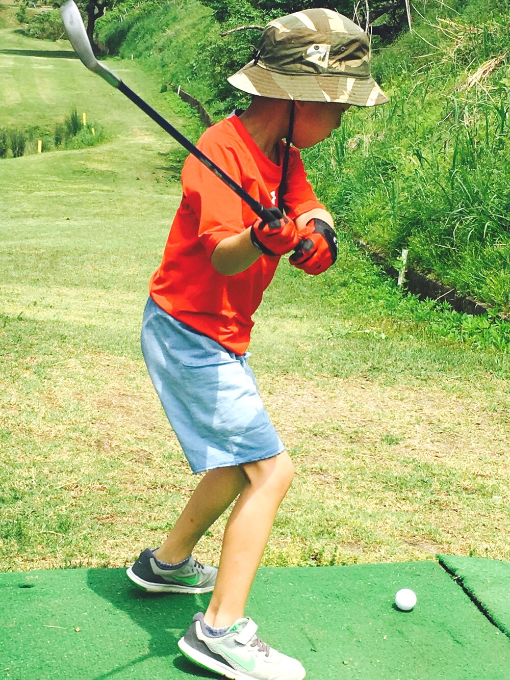 ショートコースデビュー! カジュアルstyleオーケーのクラブなのでアンダーアーマーで。実は背中にオリジナルロゴが入ってます(^_^)v アイアンとパター、専用で購入。 頑張れ息子♡