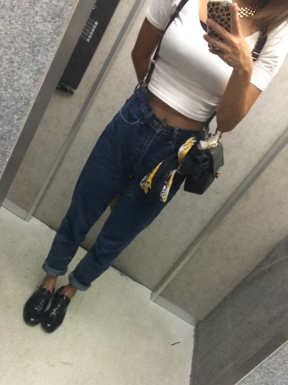 ポイントはcelineのスカーフ💕 シンプルだったのでスカーフで柄を いれてみました💕 最近はハットにはまってます💕 久しぶりにサスペンダーつけた!!笑