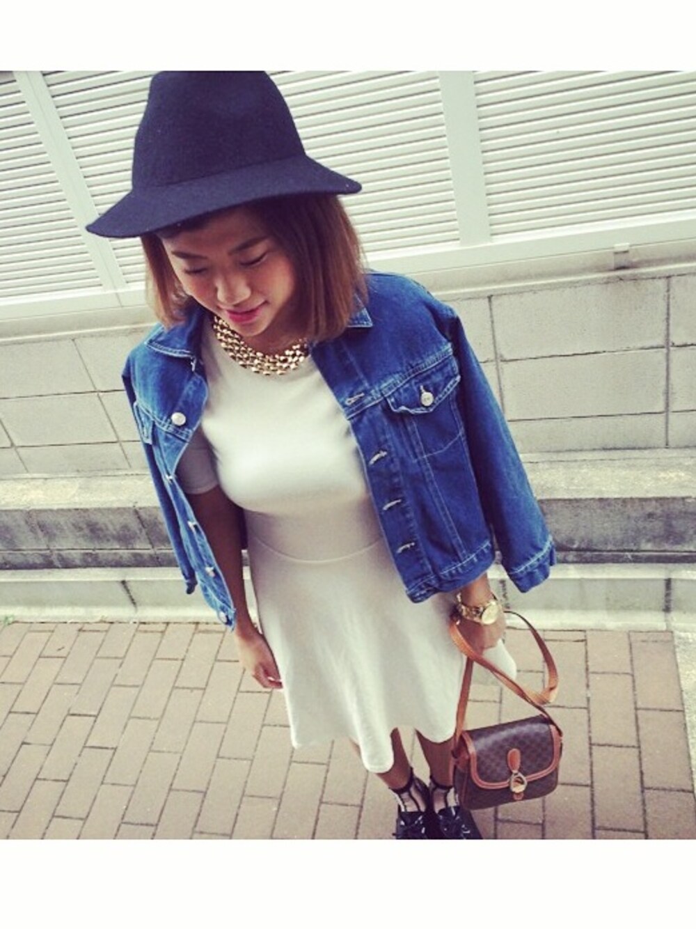 今日はtopshopのホワイトのワンピース💕 それにデニムジャケット💕 ハットにセリーヌのバッグ💖💖