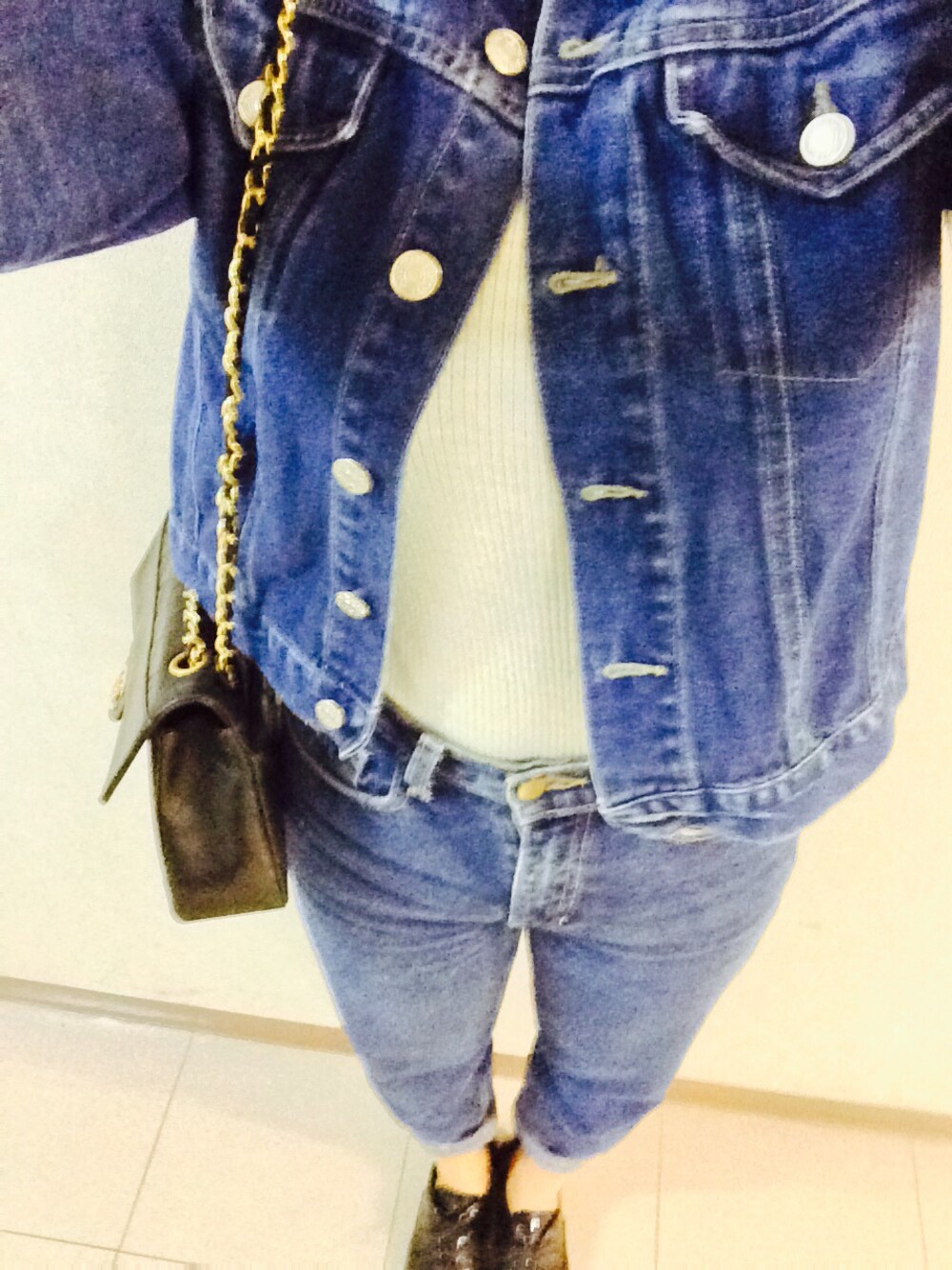 outfit👗💄💖💖 デニムonデニム💖💖 最近黒髪にしたので黒髪➕赤リップの 組み合わせが大好きです👀✨