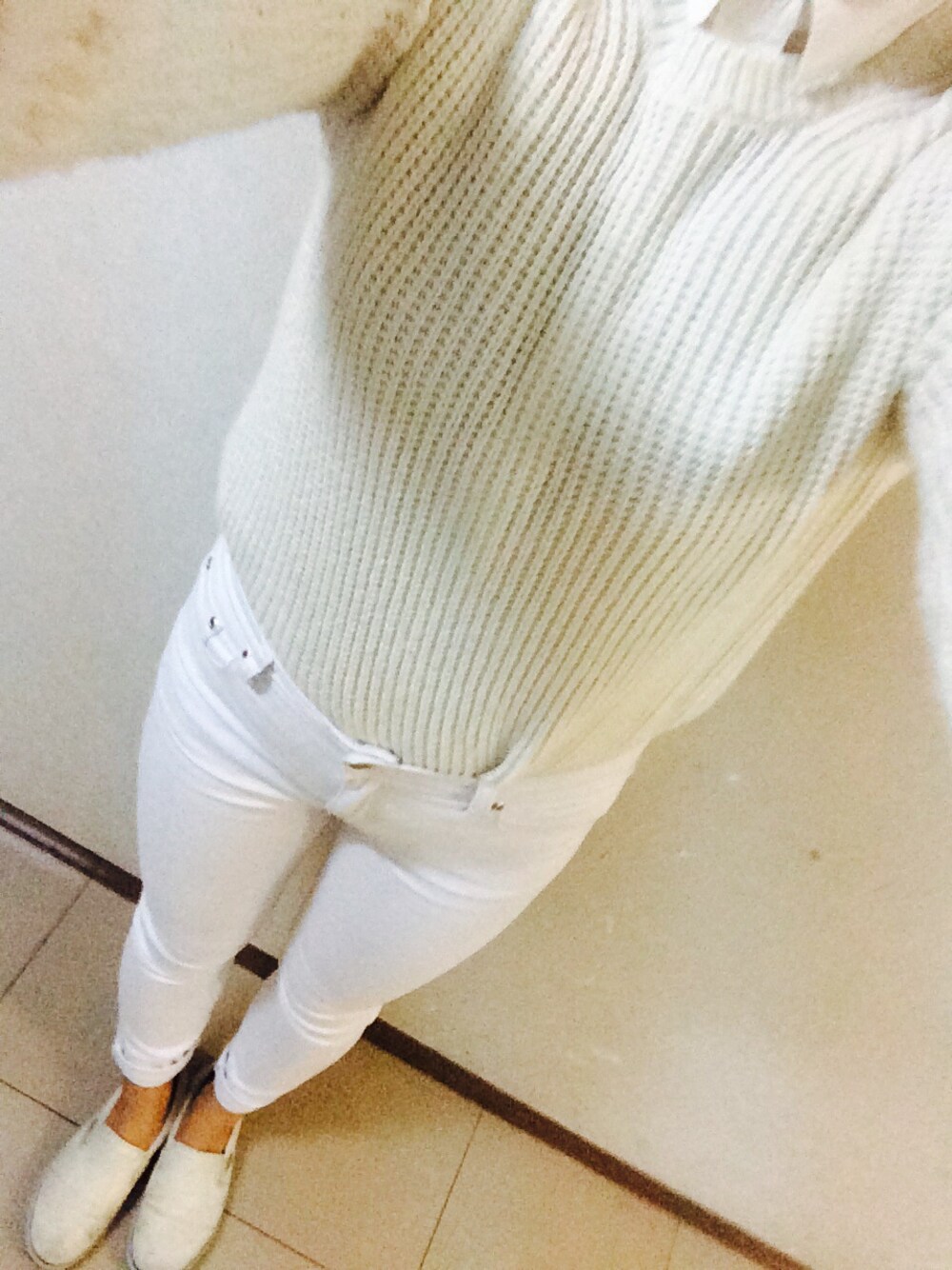 All white code👗👠💄💖 ワントーンコーデ😻😻 ニット:UNIQLO ボトム:Forever21 スニーカー:VANS