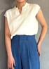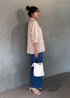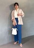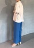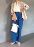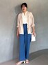ベーシックなホワイトやベージュをメインに、ブルーのパンツをポイントに加えて爽やかなコーデにしました!