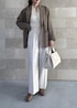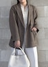 ジャケットにセンタープレスが入っているパンツを合わせた、きちんと感がありつつ、抜け感も備えているオンオフ着回せるコーデです!