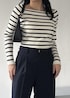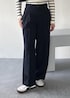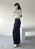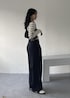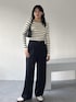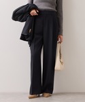 腕の金釦やパンツのサイド金釦がポイントになり綺麗めな印象に。 デコルテをスッキリ見せて女性らしく、パンツは程よいゆとり感で上下のバランスをとりました!