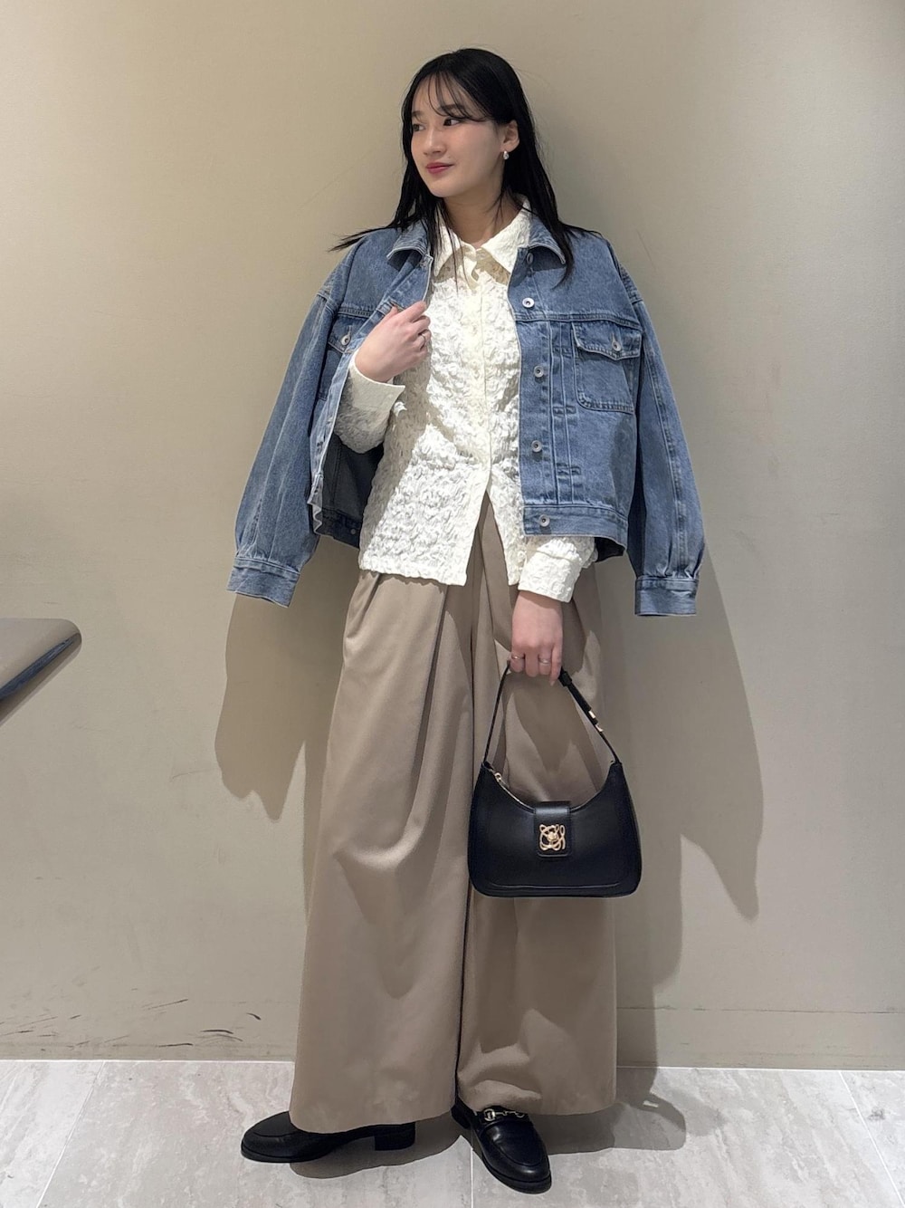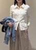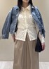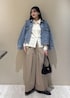 レース素材のインナーとたっぷり丸みシルエットのジャケットで女性らしさをプラス。