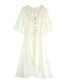 バラストライプ柄の上下セットにレース切替ティアードスカートを合わせて長さをだしました。ロングガウン、こちらはキナリバージョン♪