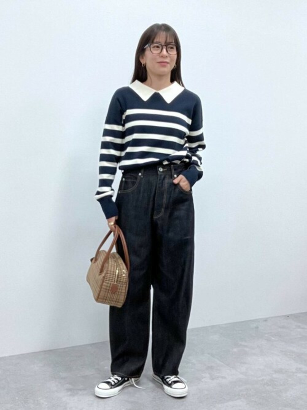 ・襟付き金ボタンニット ボーダーはカジュアルにも着れるので デニムとの相性もばっちりです! ・コクーンデニム 腰回りはすっきりとしたデザインで、 太ももから膝あたりまでゆとりがあり 裾にかけて少しすぼまっているシルエット。 ストレートシルエットが苦手な方などに 是非おすすめなデニムです! トレンドな形でもあるので一枚持っていたいアイテムですね。 キッズとお揃コーデなどもしやすそうです^ ^