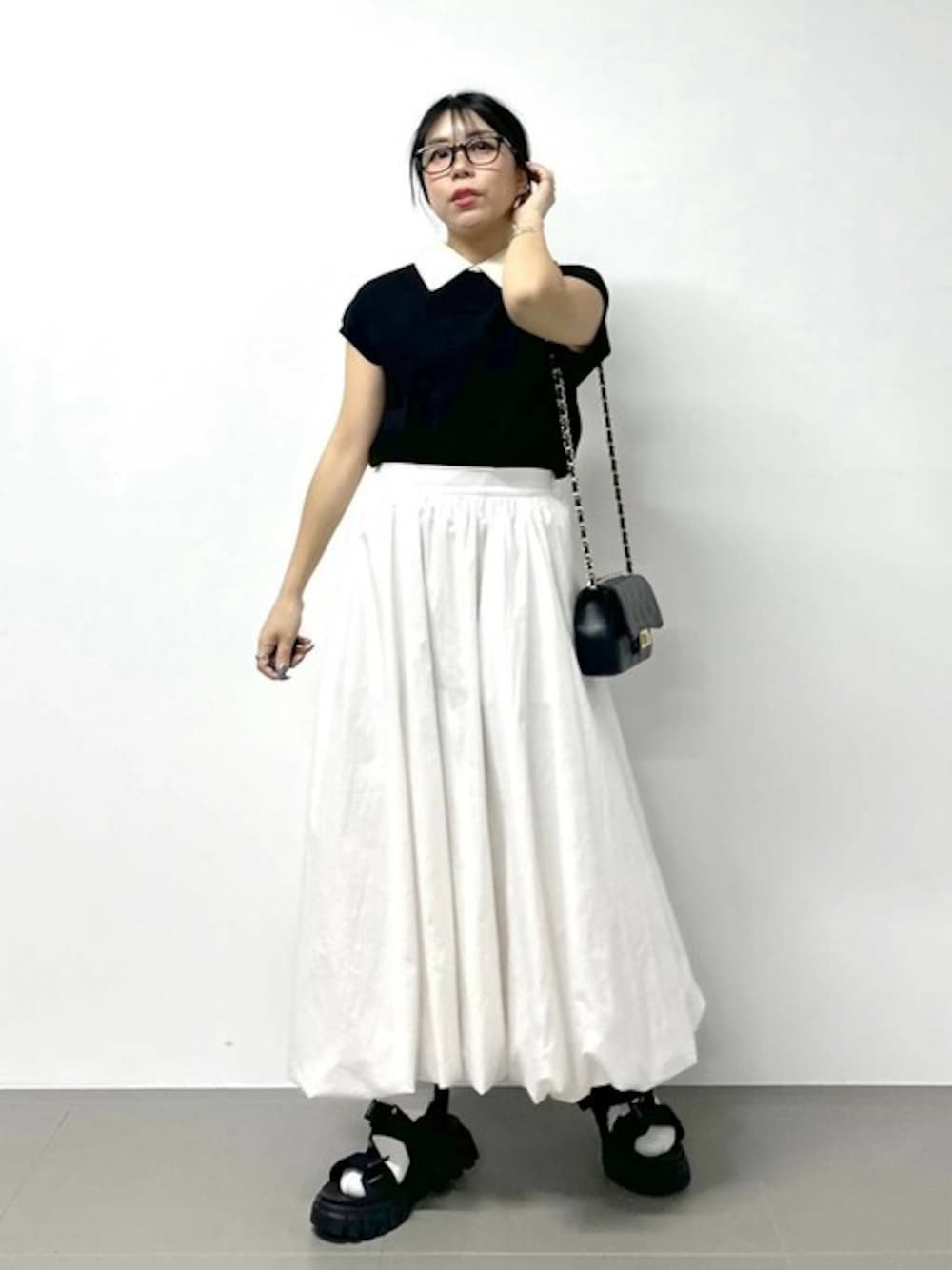 モノトーンのフェミニンカジュアルコーデ ⭐各アイテムのおすすめポイント  ̄ ̄ ̄ ̄ ̄ ̄ ̄ ̄ ̄ ̄ ̄ ̄ ̄ ̄ ̄ ̄ ̄ 【トップス】 大人気の襟付きトップスが今年も登場! オンオフ着回せる大人フェミニンなアイテム♡ シャリ味のある夏らしいニット素材が着心地良し◎ 体のラインを拾わない素材感と長すぎない丈感、裾リブでインしなくてもキレイに着れる! オススメポイントがたくさん! さらに嬉しいのが前後2wayで着れちゃいます♡ 【ボトムス】 大人気のバルーンスカートの新色ホワイトです! 今年はホワイトボトムがトレンドです♡ このスカートは白なのに透け感が気にならなくてとても優秀でした! 低身長さんでもキレイに着れる丈なのもオススメです!
