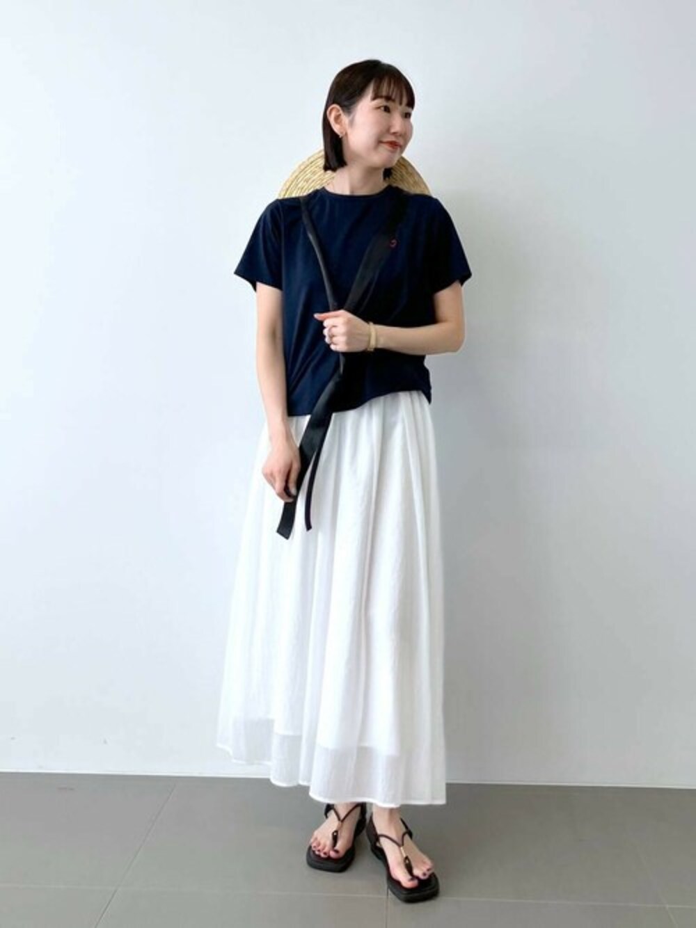 ◾️各アイテムのおすすめポイント  ̄ ̄ ̄ ̄ ̄ ̄ ̄ ̄ ̄ ̄ ̄ ̄ ̄ ̄ ̄ ̄ ̄ 【トップス】 大人気のハート刺繍TシャツのNEWカラーが登場! ワンポイントのハートが甘過ぎず、アクセントに♡ スッキリ丈で、合わせやすいサイズ感です。 【ボトムス】 シアー感のある、軽やかなスカート。 清涼感もあり、きれいめでもTシャツ合わせにスニーカーなどでカジュアルスタイルにもおすすめ。 163cmでも、丈がしっかり長めにも着用◎ ※同素材のシャツでセットアップ着用も可能