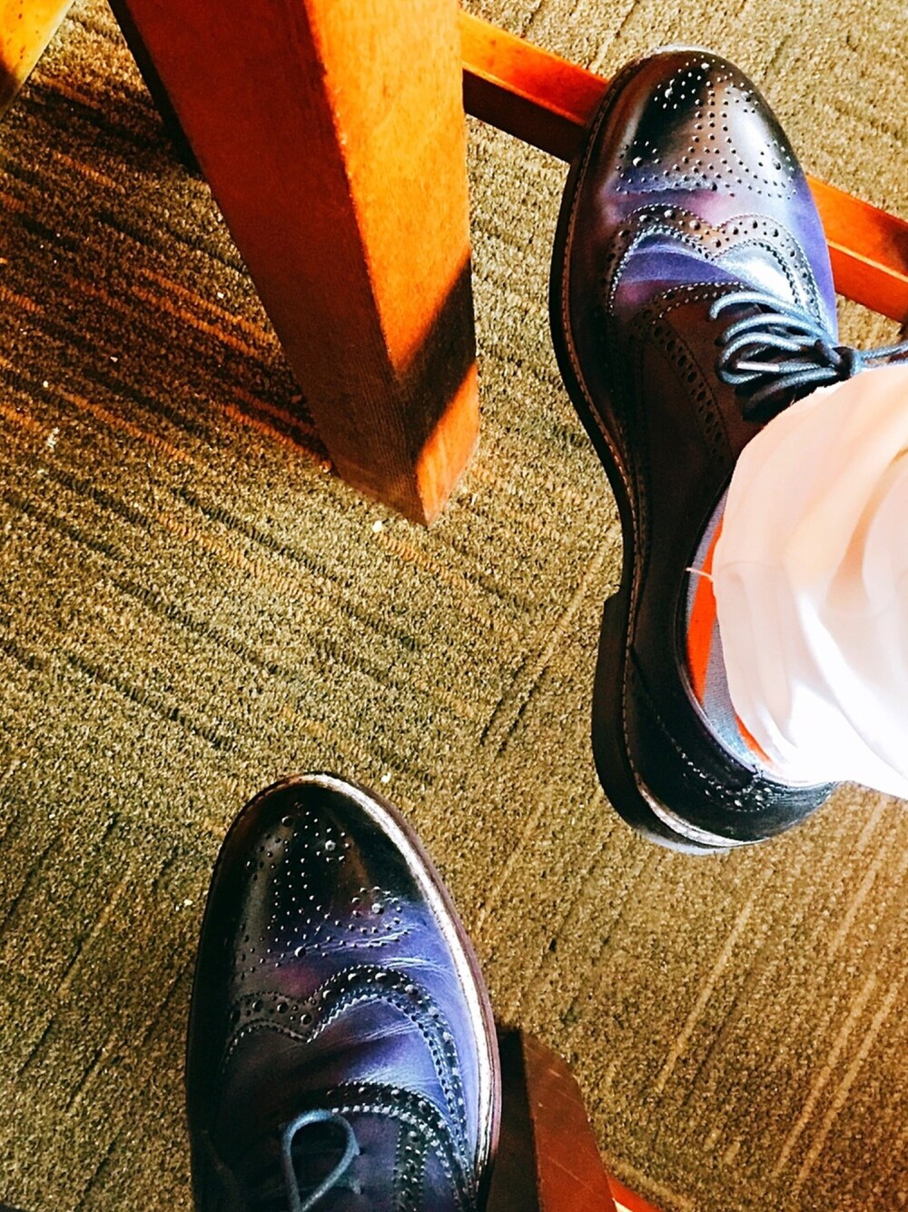 ネイビーのウイングチップとホワイトジーンズで夏向きなコーデを