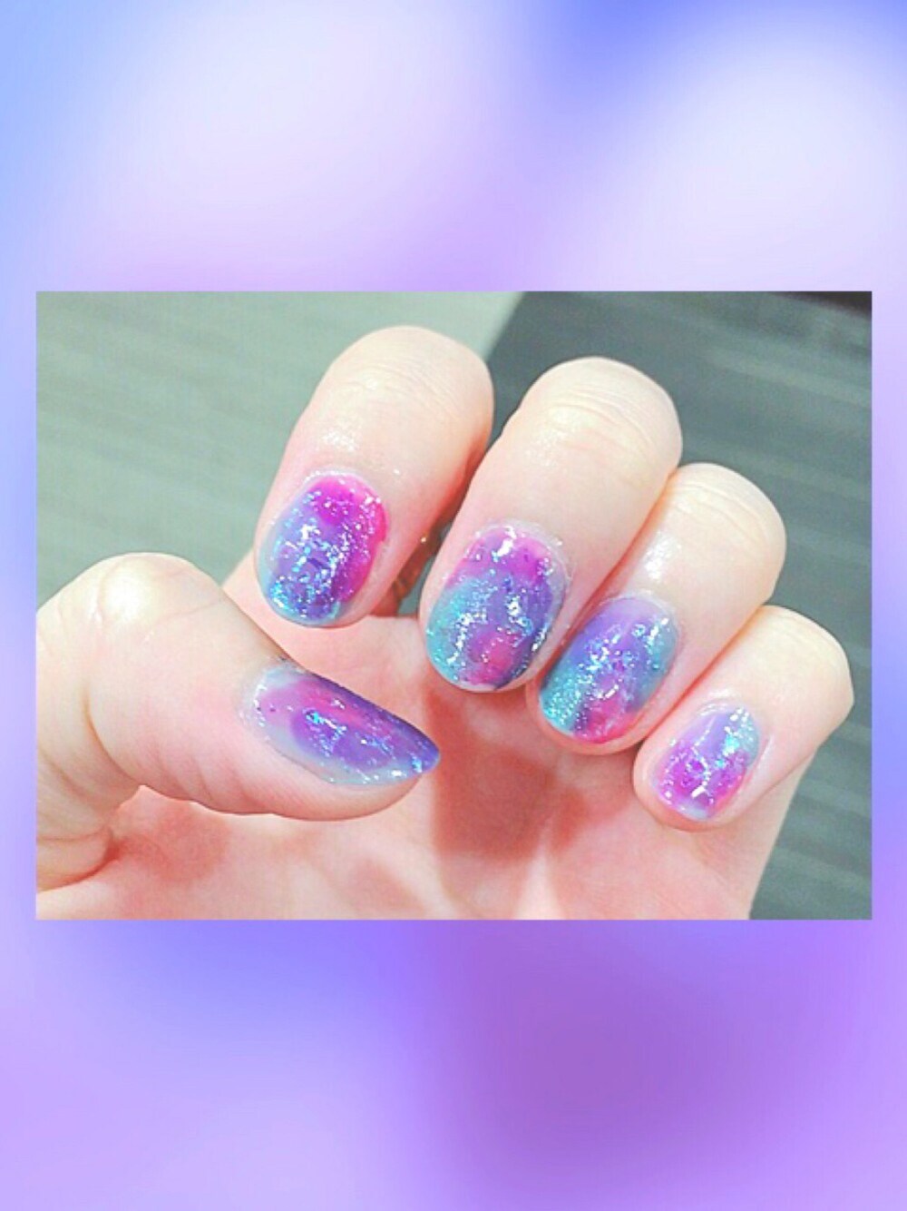 . 今週の週末限定ネイル☄ . 7日は七夕だったので🎋 天の川ネイルとします😌笑 ▼ レブロンのオーロラ入りのマニュキュア と100均のシュガーネイルを下地にして、 上からランダムにリキュールネイル💅!