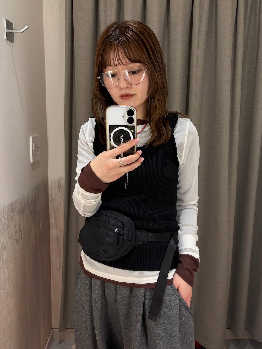 今年トレンドのレイヤードコーデ!! ウエストポーチもポイントです🎶