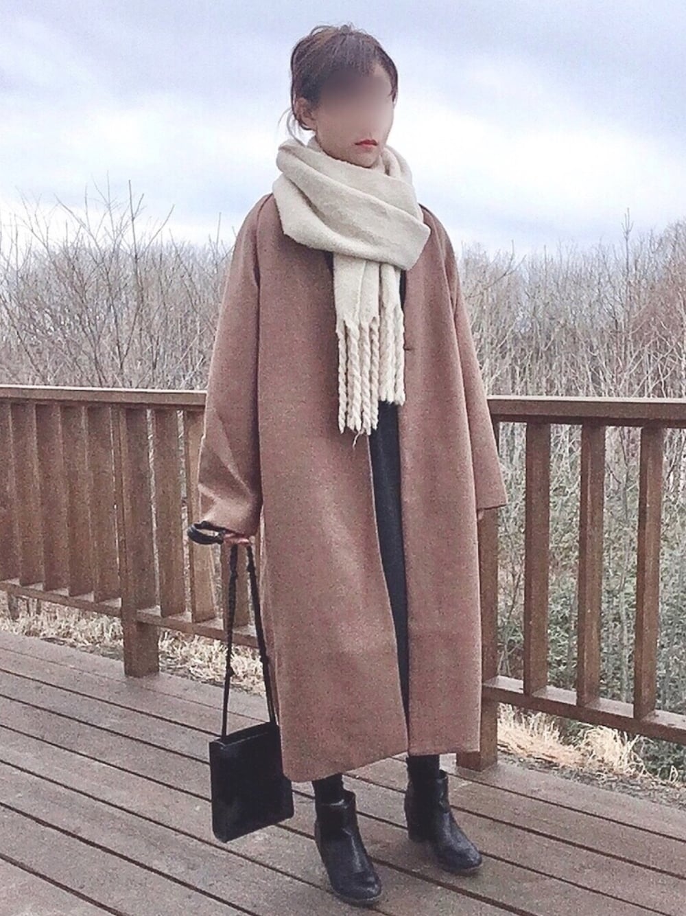 くつまるのチェスターコート「エコメルトンチェスターコート」を使ったコーディネート