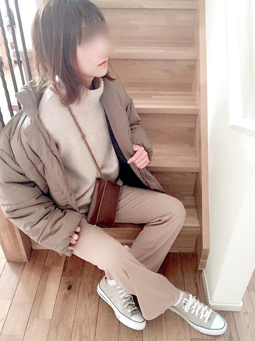 ベージュのワントーンコーデ😊 グローバルワークのニットお気に入りです。 いつもイイねやお気に入りして下さる方ありがとうございます🙇できる限りお返しします👍