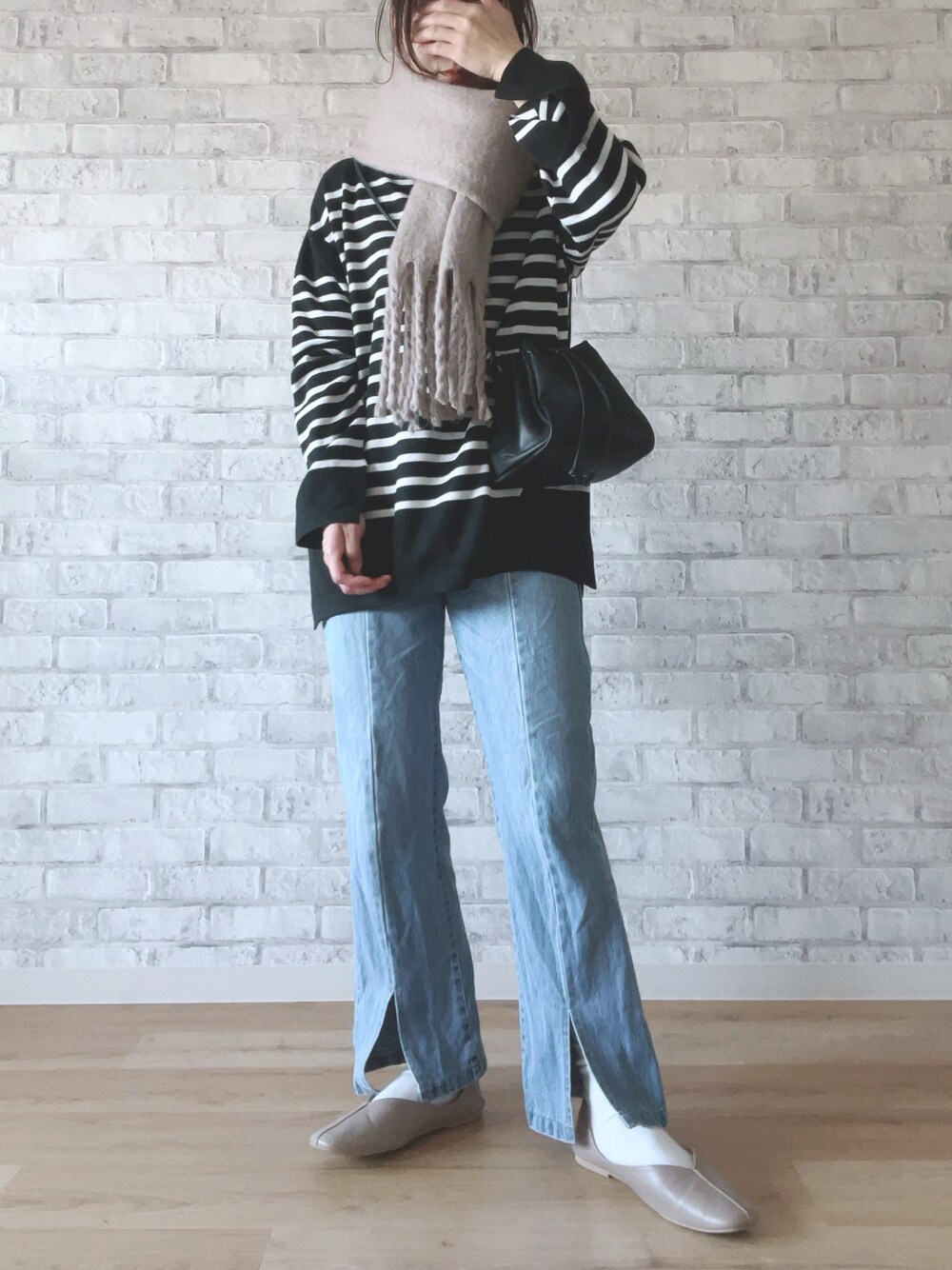 くつまるのデニムパンツ「【2サイズ展開】スリットセミフレアデニム【web限定アイテム・Sサイズあり】」を使ったコーディネート