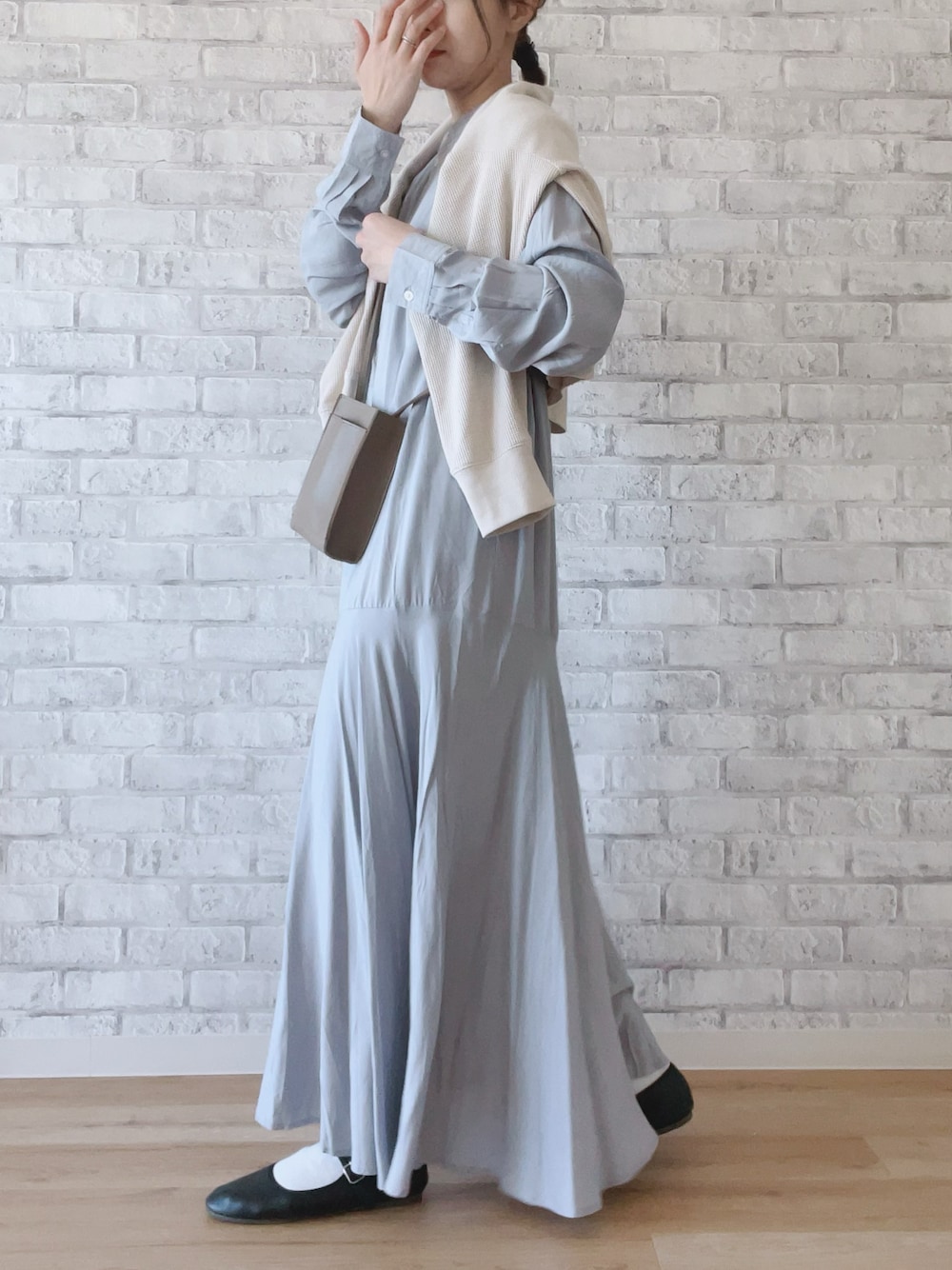 くつまるのTシャツ/カットソー「ラウンドヘム長袖サーマルロングTシャツ」を使ったコーディネート