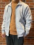 グレーのナイロンジャケットに色物ニットと落ち着いたコーデュロイパンツで被りにくいコーデに!✨✨