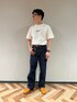 シンプルスタイルだからこそ スニーカーのオレンジの差し色がアクセント!🍊
