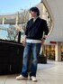 ハーフジップと定番スニーカーを組み合わせた大人カジュアルコーデ!丈を短くみせてインナーで襟付きのシャツと合わせることでこなれ感のある大人っぽい印象にみえるのと、デニム×白スニーカーで春っぽさをミックス✨👖👟 まとまったコーデになります☘️