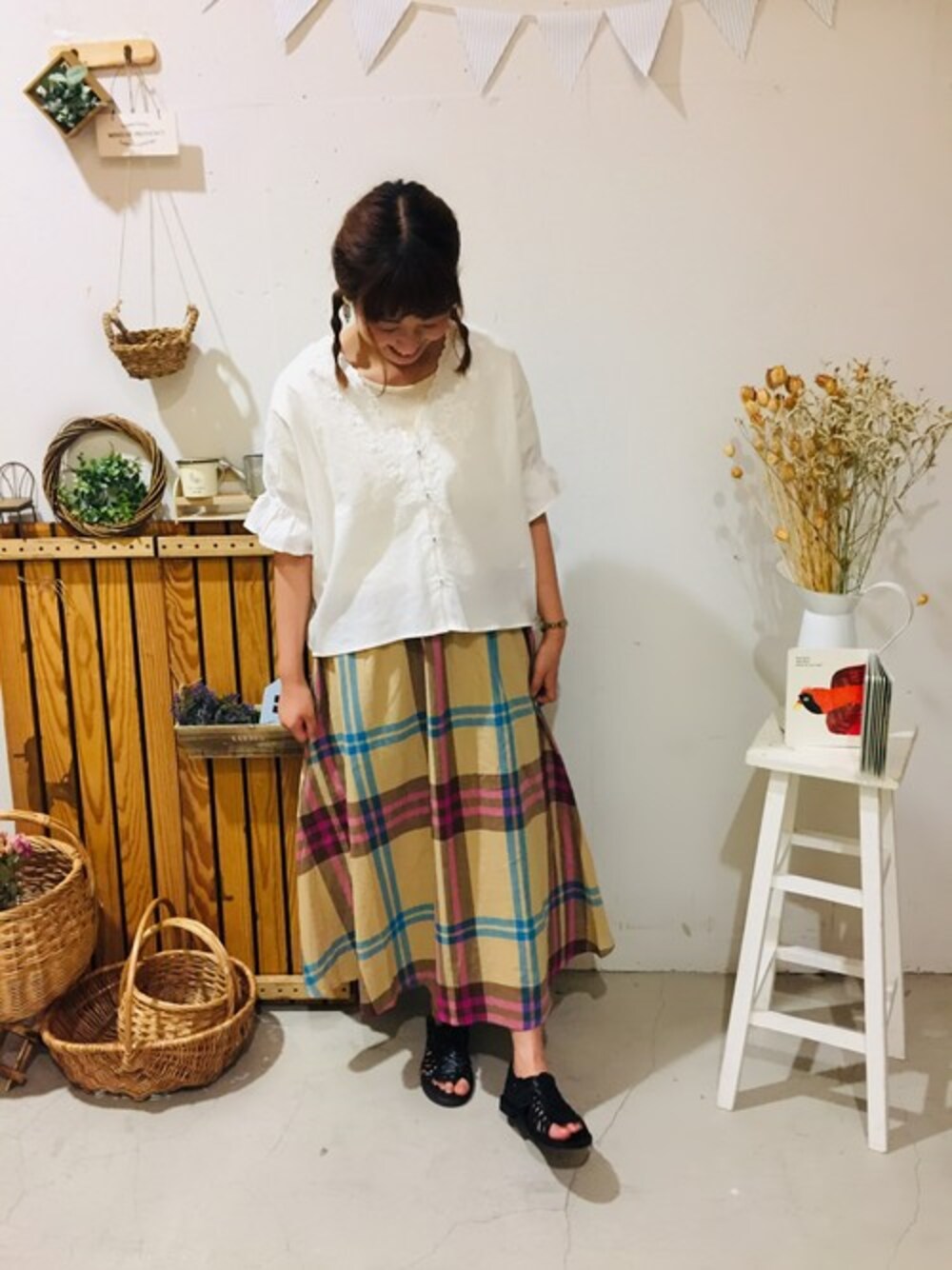 aoki(∵)のスカート「ビッグマドラスチェックスカート」を使ったコーディネート