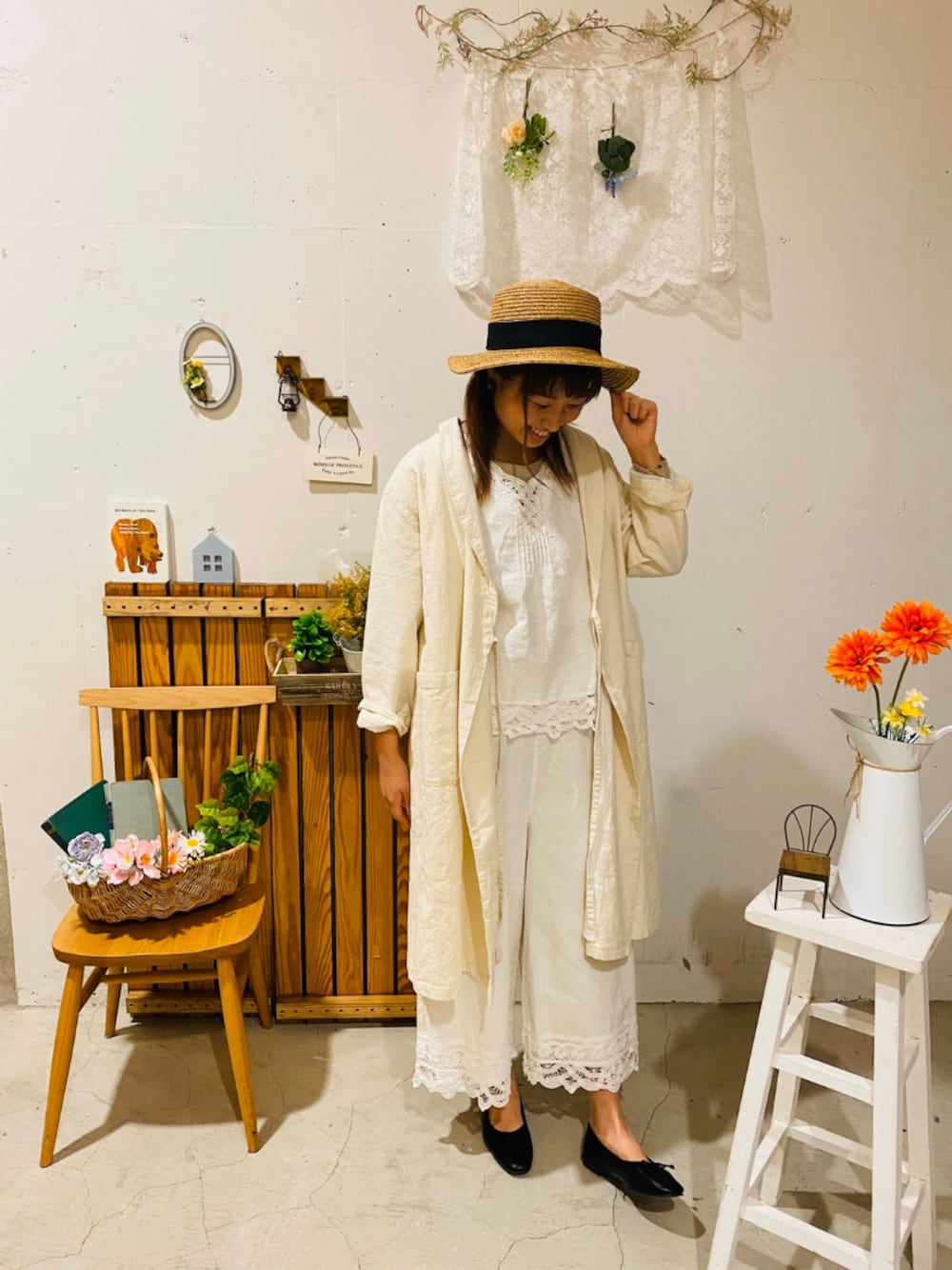 aoki(∵)のハット「ラフィアカンカン帽」を使ったコーディネート