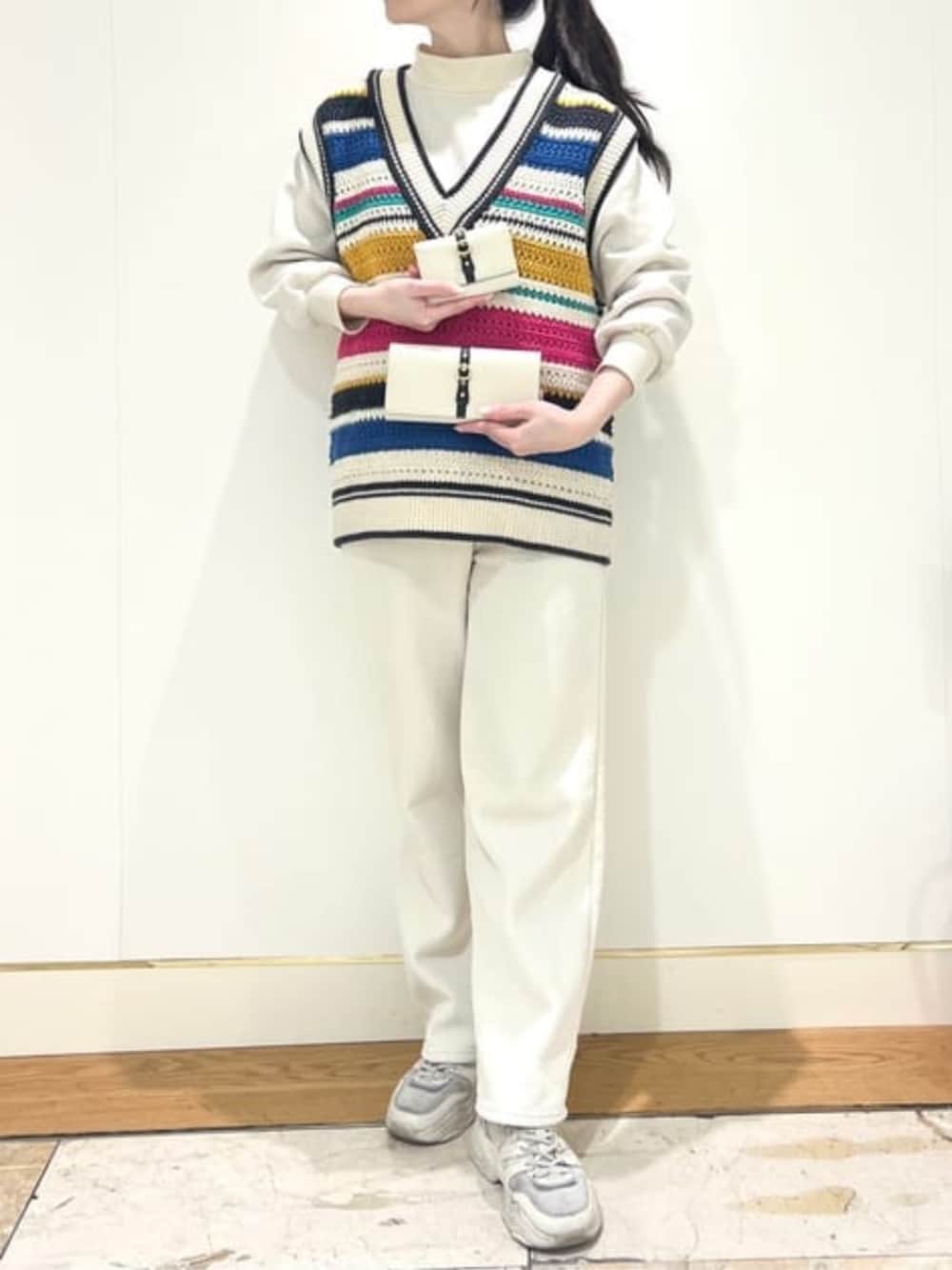 カラフルニットにホワイトのお財布を合わせて華やかにコーディネートしました❣️