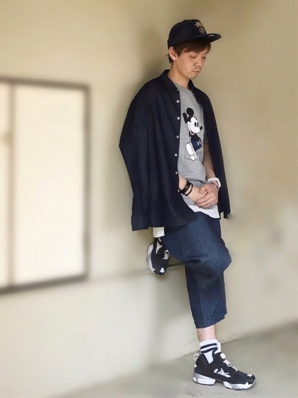 2018/05/25(金)☀️のコーデ デニムのパンツを履いたミッキーのTシャツ😍✨ じゃあ俺も🙋♂️✨ …って事で、 キャップとシャツとパンツをデニムでまとめました🎵 …と言うより、 このミッキーTを着た時は絶対デニムと合わせてる🤣 ワンパターン😑✌️ それではまた〜😆👋