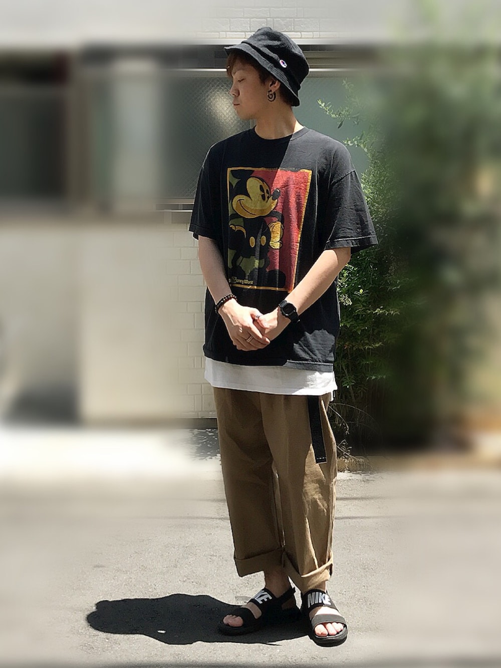 2018/06/03(日)☀️のコーデ 1枚欲しいTシャツがあったから、 ふらっと仕事帰りに、お買い物へ行った土曜日。 目的のTシャツをゲットして、帰ろうかと思ったけど、 ちょこっと気になったので古着屋へ立ち寄る! そこでミッキーTシャツと出会ってしまったのが最後… バッチリ予算オーバーな3枚購入🤣💦 その1枚を早速、次の日に着る😎✨ 予算はオーバーしたけれど、 めちゃくちゃハッピーな気分に、なれちゃった😆✌️ この気持ち…プライスレス(笑) それではまた〜😆👋
