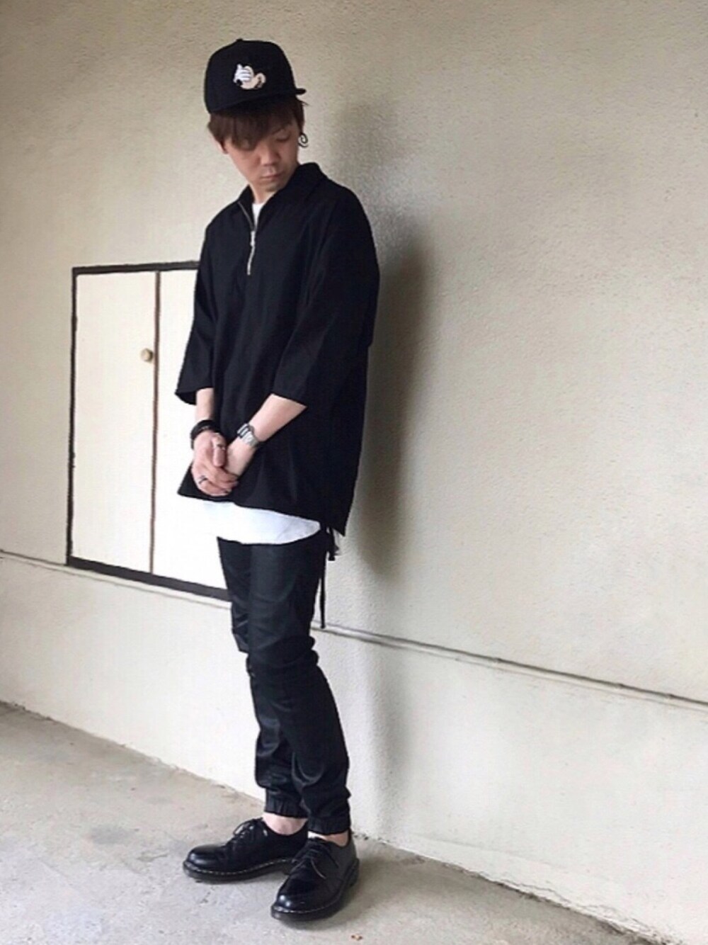 2018/06/06(水)☔️のコーデ ハーフジップ のプルオーバーが… この先は内緒🙊🆕✨← 雨の日恒例のブラックコーデ! 〜さり気なくミッキーを添えて〜 それではまた〜😆👋
