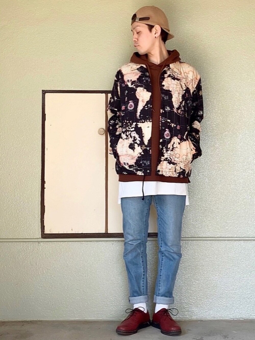 癖のある柄アウターに、 色を拾ったアイテムを合わせて、 春らしく淡い色のデニムを合わせれば、 まとまって見えるんじゃないか持論。 アウターの裾の紐が片方だけ垂れてるのが気になる🙈💦 それではまた〜👋😆