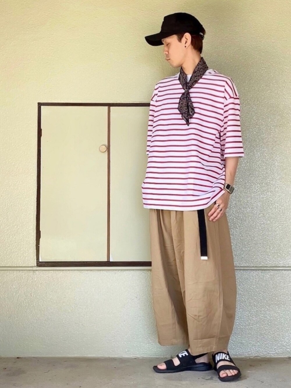 女の子がメンズアイテムを着るのが当たり前な最近。 …その逆も然り?👴🏻👍🏻✨ ZOZOのヘビーウェイトのTシャツは、 サイズを調整してゆるっと着れるようにオーダー✨ (今じゃ出来なくなったけど😭) パンツは、なんとかウエスト入りました🤣👍✨ アクセントにスカーフなんて巻いちゃったりして💙🧕← それではまた〜👋😆