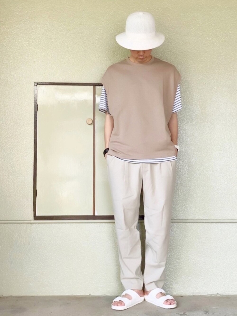 薄くて消えそう…スゥ…( ' ω :::……… なんて事はないよ🤣💦 派手なアイテムを使ったコーデとは、 違った感じでワントーンも目立つと思う🙋♂️ さり気ない細線のボーダーTに、おニューのベスト❗️ またベスト買っちゃった🤣💸 それではまた〜👋😆