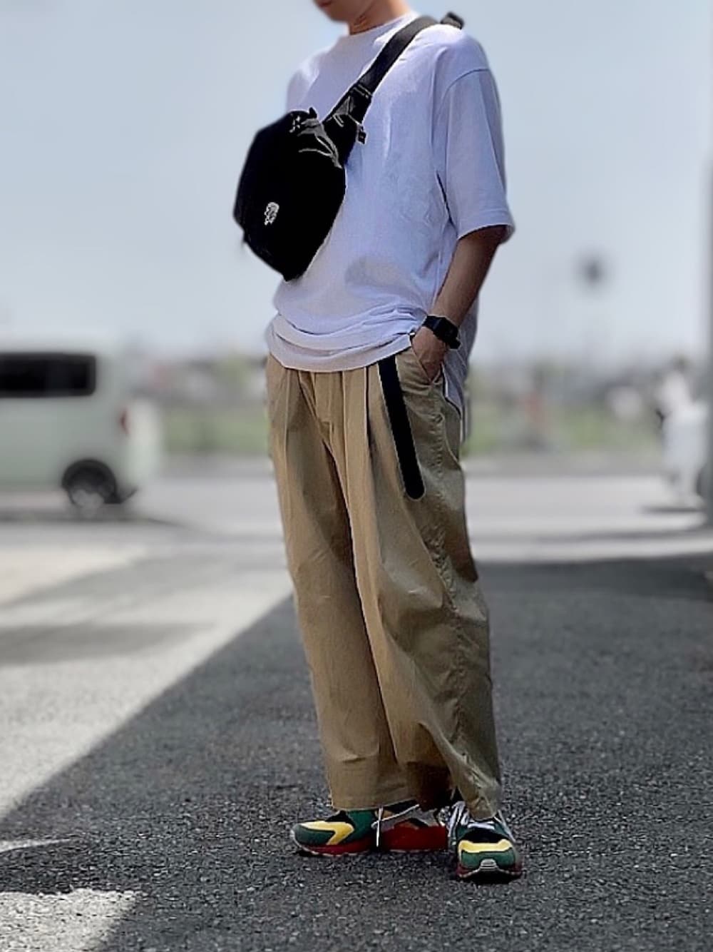 派手な靴を目立たせようと、 他はシンプルに🎵 日陰で暗くてよくわかんない…(・ε・`)チェッ まぁいっか🤣 見ていただき、どうもありがとうございました👋😆