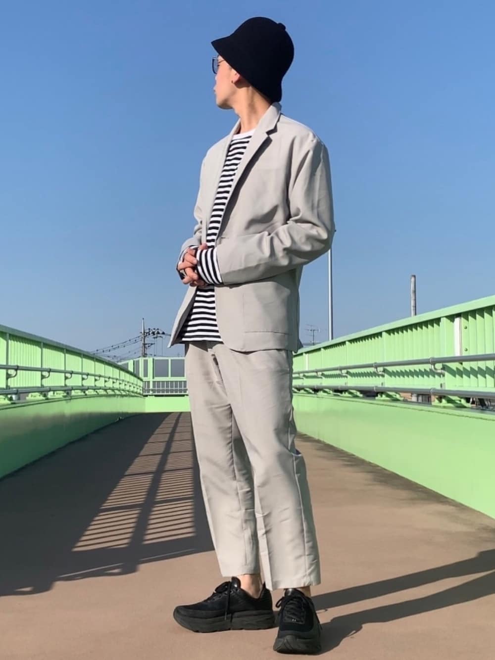 サマルのセットアップ「ポリトロ 2Bテーラードジャケット&アンクルパンツ リラックスフィット セットアップ」を使ったコーディネート