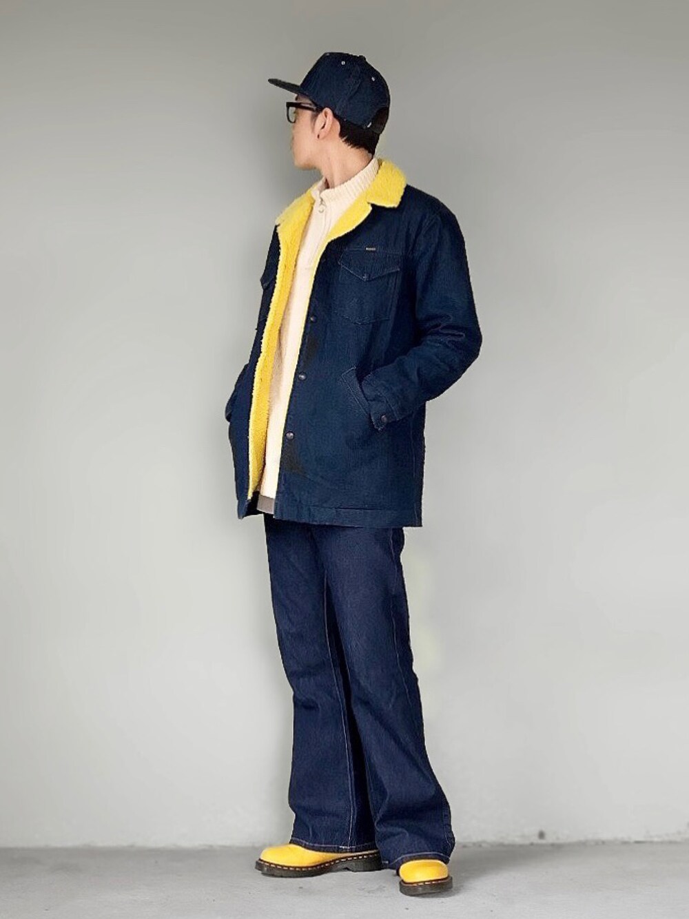 デニムの、 キャップとジャケットとパンツを使って、 セットアップ風🕺✨ 裏ボアとマーチンはイエローで合わせてポイントに💛 見ていただき、どうもありがとうございました👋😆 いいね、お気に入り、フォロー、フォルダインも、 どうもありがとうございます🙇♂️❤️