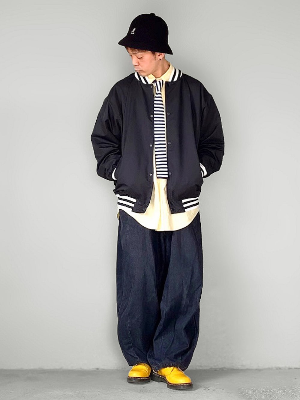 スタジャンのリブのラインって、 良いアクセントになるなぁ〜と思っていたところ❗️ ラインにそっくりなボーダーネクタイを見つけて、 合わせたきれいめカジュアルコーデ🎵 ボーダーネクタイによって、 なんかやかましい感じに❗️🤣 差し色にシャツと靴でイエロー💛 見ていただき、どうもありがとうございました👋😆 いいね、お気に入り、フォロー、フォルダインも、 どうもありがとうございます🙇♂️❤️