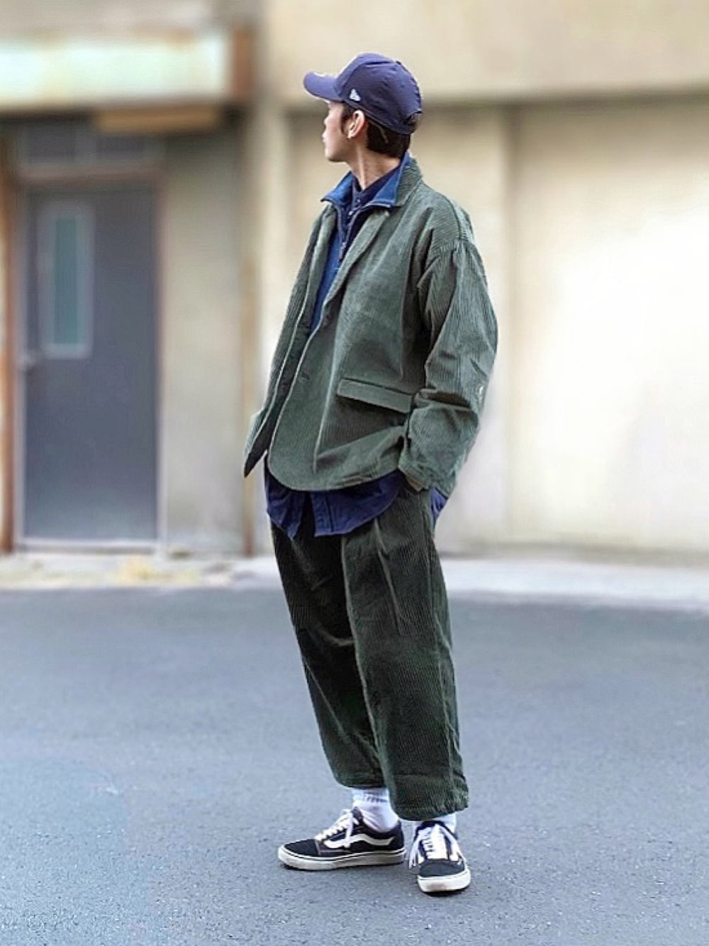 サマルのセットアップ「古着風親子コーデュロイワイドライトシングルテーラード&テーパードパンツセットアップ」を使ったコーディネート
