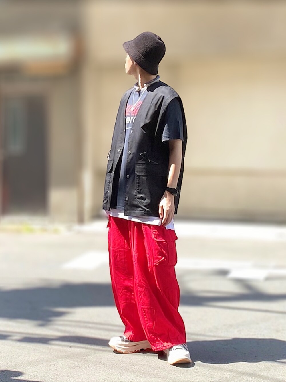 赤カーゴパンツコーデ🙋♂️ 暑いので、首にはアイスリングが付いてます🧊✨ …撮る前に外すのをすっかり忘れてた🤣 見ていただき、どうもありがとうございました👋😆 いいね、お気に入り、フォロー、フォルダインも、 どうもありがとうございます🙇♂️❤️