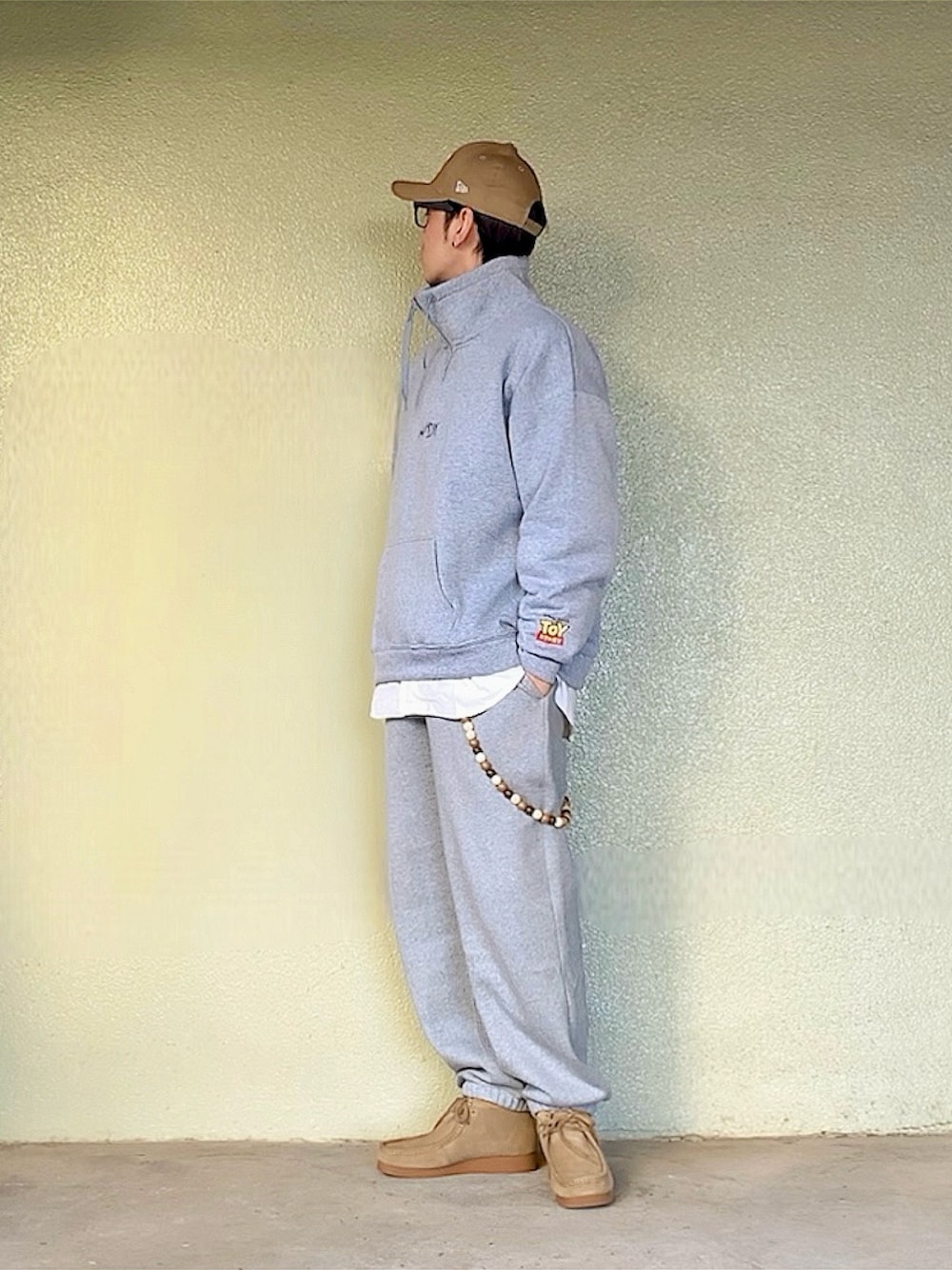 サマルのスウェット「【neos -addictive design-】TOYSTORY トイストーリー ビッグシルエット バックプリント&刺繍 モックネック ハーフジップ スウェット アノラック トレーナー」を使ったコーディネート