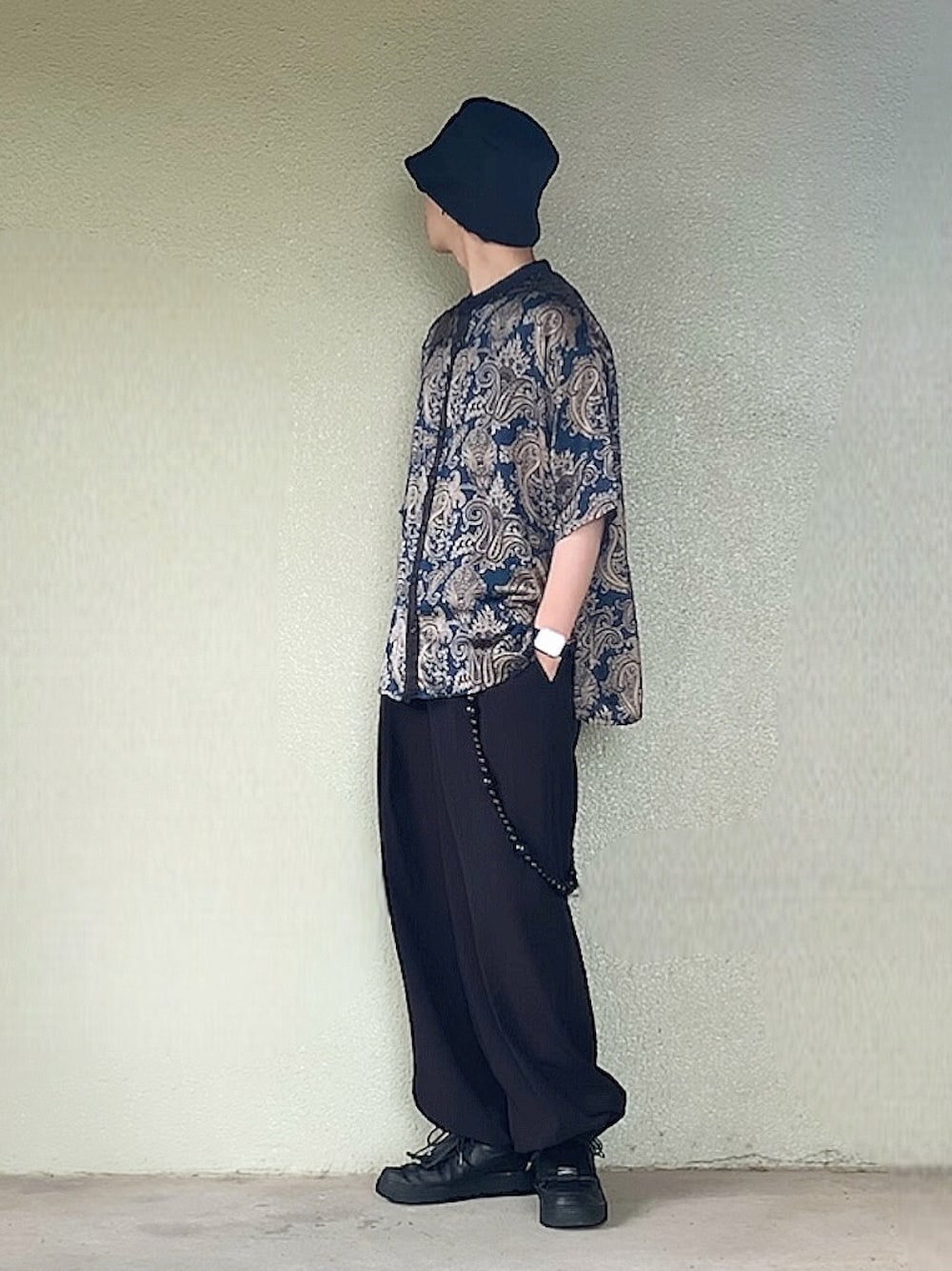 柄シャツコーディネート🙋♂️ バンドカラーで首元スッキリ✨ 見ていただき、どうもありがとうございました👋😆 いいね、お気に入り、フォロー、フォルダインも、 どうもありがとうございます🙇♂️🎵